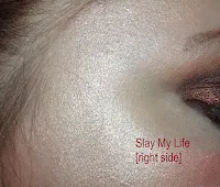 nothing much to add here; They apply well, don't bleed shimmer/glitter and wear all day. Angelface doesn't look wildly different from Slay My Life on my skintone, but the shade is pretty anyway. No real criticisms here.
